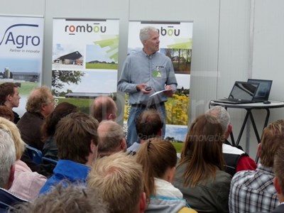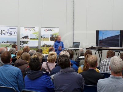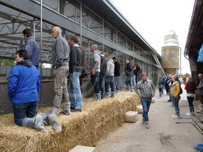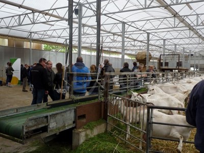 Na ontvangst met een lekker broodje beenham, gaven de deelnemende bedrijven- Acconavm, Geitenbelang, Agrifirm, Rombou en ID Agro - presentaties over actuele thema's voor het werken en bouwen aan een duurzame leefomgeving voor de melkgeit en de geitenhouder. Aansluitend vertelde ook Willeke Veldman nog over het verloop van de bouw, waarna er een rondleiding volgde door de stal.