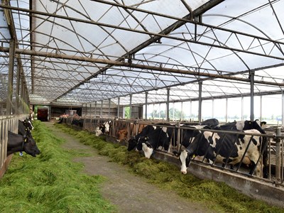 Jan en Kristian zijn blij dat ze met een nieuw membraan op de bogen weer een tijd vooruit kunnen. In een stal die sowieso goed voldoet. Met de nieuwe dakbedekking is het nog steeds erg licht en luchtig in de Serrestal. ‘De vruchtbaarheid en de productieresultaten zijn goed en beter dan in de oude stal. Dat is een groot verschil. Maar met cijfers is dat moeilijk te staven. Immers, ook bij een nieuwe traditionele ligboxstal waren de resultaten waarschijnlijk vooruitgegaan ten opzichte van de oude bedompte stal’, zegt Kristian. ‘We horen dat veel collega’s met een Serrestal ook minder klauwproblemen hebben. Vooral mortellaro neemt bij hen af. Helaas kampt onze veestapel nog steeds met die infectie. Echter, dat wijten we niet aan het stalconcept maar aan de dichte vloeren waar wij mee werken. De koeien blijven hier zomers ook binnen en helemaal goed droog en schoon krijgen we die vloeren niet.’
