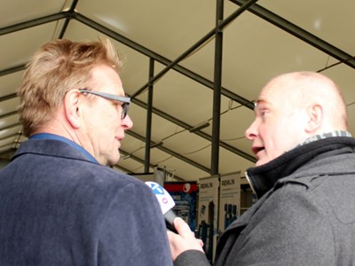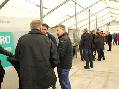 Naast de journalist van de NOS, kwamen vele andere belangstellenden de markante stal en de stands van de deelnemende bedrijven bezoeken. Af en toe liet zelfs het zonnetje zich zien en dit leverde mooie plaatjes op.