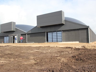 Ook NOS bezoekt Open Dag kalverstal Fluitman met bijzonder luchtkussen dak