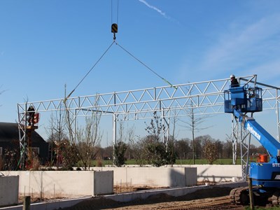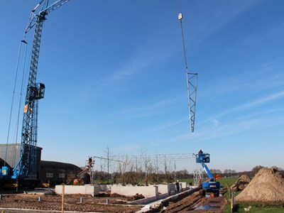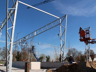 Staalconstructie bij bijzondere varkensstal gaat de lucht in!