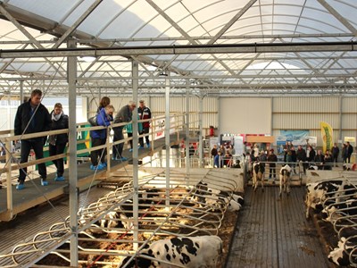 Vooral de Feedwall - waarbij de koeien via de zijgevels het voer krijgen - trok veel aandacht van de bezoekers. De koeien werden niet warm of koud van de vele belangstelling en aten rustig door. Ook namen veel mensen een kijkje bij de innovatieve melkstal waarin geprogrammeerd gevoerd wordt.
