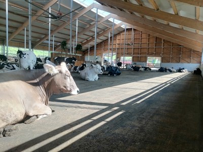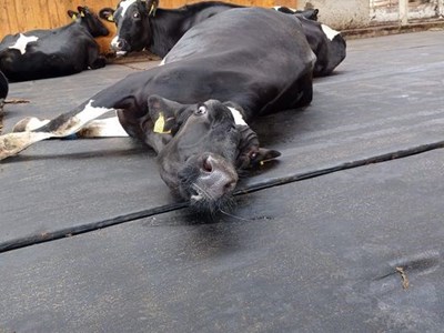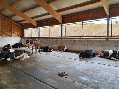 Midden in Slovenië hebben wij de High Welfare Floor gemonteerd in deze nieuwe stal. Het bedrijf bestaat uit ruim 60 melkkoeien die op de High Welfare Floor worden gehouden, deze worden gemolken door een melkrobot. De koeien hebben overal de ruimte om te gaan liggen. De urine trekt door de vloer heen en wordt afgevoerd, terwijl de mest autonoom van de vloer geraapt wordt.