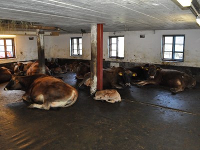 Midden in Noorwegen tussen de Fjorden hebben we deze stal voorzien van de High Welfare Floor. Op dit bedrijf worden totaal 8 melkkoeien gehouden. In de zomer lopen de koeien continu buiten, 's winters gaan de koeien naar binnen. De stal is in de tweede wereld oorlog gebouwd en was tot 2022 een grupstal. Deze grup was afgeschreven en de melkveehouder vond dierwelzijn net als in de wei een belangrijk aspect, hierdoor is er gekozen voor de High Welfare Floor. Eén keer per dag wordt de mest er met de hand afgeschept, een robot was voor dit oppervlak niet noodzakelijk. De koeien worden twee keer per dag gemolken aan het voerhek.