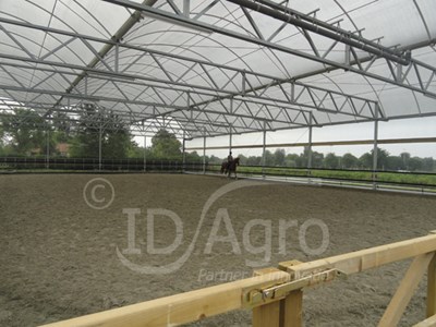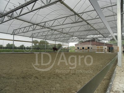 Op een mooi locatie in Amstelveen is de eerste Horse Lounge, uitgevoerd als overkapping van een rijbak, gerealiseerd. Het betreft hier het overkappen van een bestaande buitenbak/rijbak , die hiermee functioneler wordt in het gebruik. In de warme zomerdagen kan men comfortabel rijden met behoud van diffuus daglicht, zonder dat ruiter en paard hinder ondervinden van de brandende zon. In het najaar en de winterperiode kan er ook comfortabel gereden worden in de Horse Lounge. Van buitenaf gezien heeft het gebouw een donkere en ingetogen kleurstelling voor een optimale inpassing in het landschap. Van binnen is er de unieke daglicht beleving.