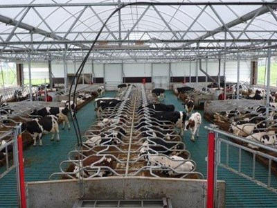 De koeien worden gemolken door 3 Lely melkrobots. Er is een ruim strohok / transitieruimte voorzien, en voldoende ruime separatie mogelijkheid en behandel ruimte.