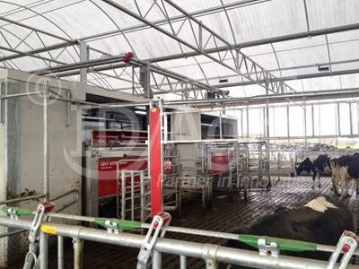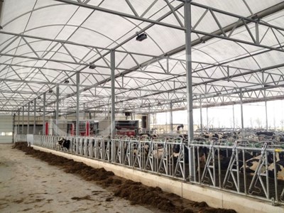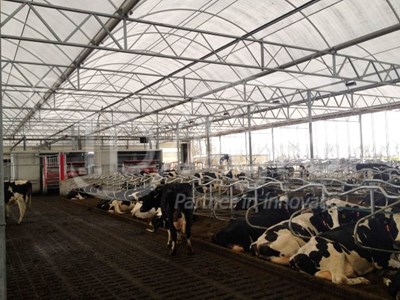 De stal betreft een 040 indeling voor het melkvee met een apart gedeelte voor drogen en verse koeien op stro voorin de stal. Hiermee is er goed zicht op deze dieren. Gemolken wordt er met 2 robots.