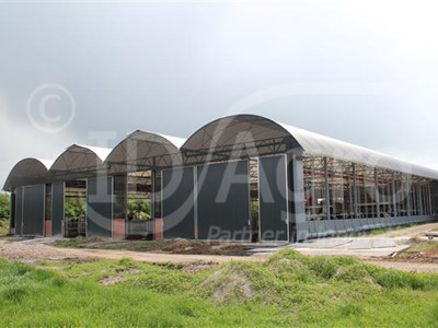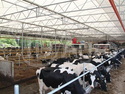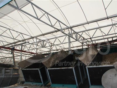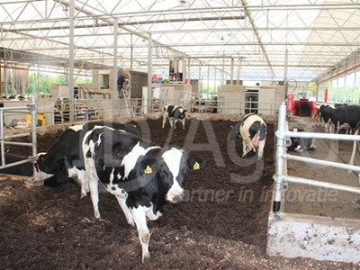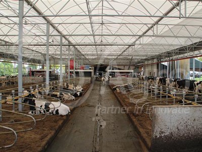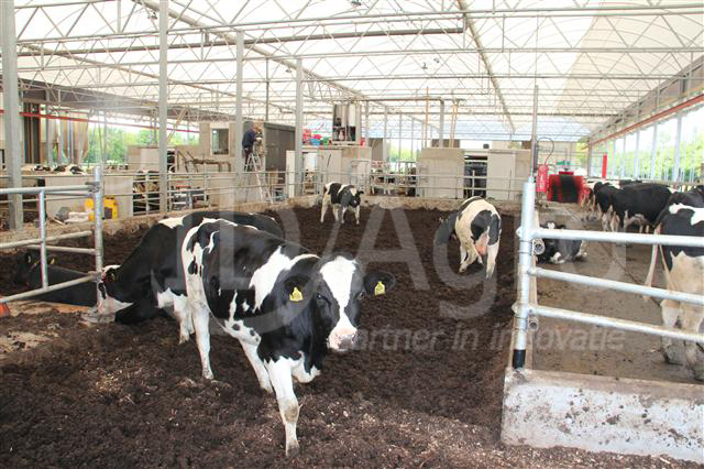 De bovenbouw van deze stal is voorzien van 2 stuks move nokken welke aangestuurd worden d.m.v. een weerstation/ klimaatcomputer, tevens is er gekozen voor een melkwitte dakbedekking. Ook zeer bijzonder zijn de ligboxafscheidingen, deze zijn gemaakt van glasfiber en daarmee zeer flexibel en koevriendelijk.