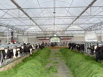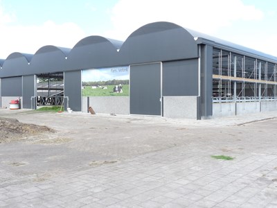 Kenmerkend voor de stal is de compacte opzet en de efficiënte indeling, waarbij er voldoende ruimte voor de dieren is. De serrestal met een afmeting van ca. 35 meter breed en ca. 37 meter lang is onderkelderd, en voorzien van Berkel D1 vloer icm een Meadowfloor ter plaats van de melkrobots. De koeien worden gemolken door 2 Lely melkrobots. Er is een strohok / transitieruimte voorzien, en voldoende ruime separatie mogelijkheid en behandel ruimte.