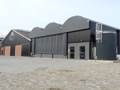 Een Serrestal die mooi aansluit bij de bestaande bebouwing en op deze manier mooi integreert op het bestaande erf. Er is sprake van optimaal daglicht en ventilatie mogelijkheden wat bijdraag aan werkplezier voor mens en dier.