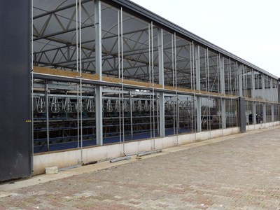 Het betreft hier de nieuwbouw van een Serrestal naast de bestaande ligboxenstallen. In de Serrestal is een melkstal met wachtruimte en separatie boxen en een transitieruimte gesitueerd. De Serrestal is gesitueerd direct langs de voergang van de bestaande stal, waardoor er efficiënte benutting van ruimte is.
