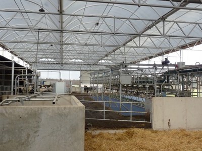 Kenmerkend voor de stal is efficiënte indeling waardoor de koeien vlot gemolken kunnen worden, en nadien eenvoudig gesepareerd kunnen worden indien nodig.