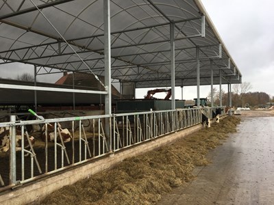 Het betreft hier de renovatie en uitbreiding van een ligboxenstal. De gehele bovenbouw van de gedateerde stal is vervangen door een Serrestal bovenbouw. Ook is de stal aan de rechterkant uitgebreid met ruimte voor een melkstal en wachtruimte. Langs de linkerzijgevel is een nieuwe fundering strook voorzien waarop de constructie en nieuw muur is voorzien. Hiermee is er meer ruimte voor de dieren ontstaan, en is er meer arbeidsgemak en werkplezier voor de veehouder gecreëerd. De stal is ca. 36 meter lang en 33 meter breed en heeft c.a. 104 ligplaatsen voor melkvee, droogstaande koeien.