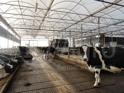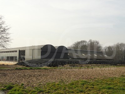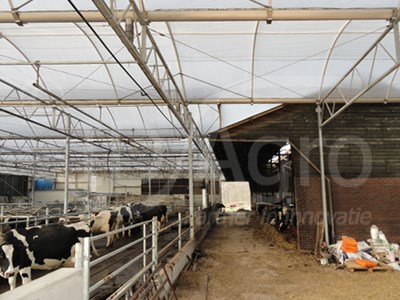 De Serrestal is aangebouwd tegen de bestaande open frontstal welk gebruikt werd als huisvesting van de melkkoeien maar nu dienst doet als jongveestal. Langs de openfront stal loopt de Serrestal door waarmee er een machineberging/opslag is verkregen. Kortom; een mooi resultaat van een renovatie en uitbreiding van een bestaande situatie.