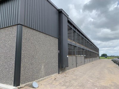 De onderbouw / fundering is als basis gebruikt voor de realisatie van de Serrestal met een 3+1 indeling. De stal is voorzien van een Lely melkrobot en bied plaats aan 70 melkkoeien en bijbehorend jongvee.