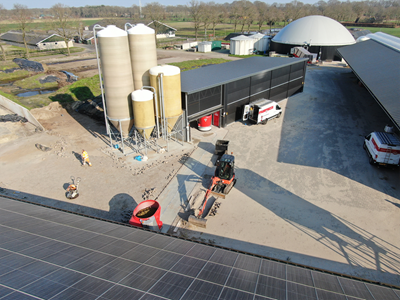 Naast de bouw van de tweede Roundhouse hebben we een modulaire voerkeuken voor de Lely Vector gerealiseerd. Zowel het vee in de stal als in de twee Roundhouses worden gevoerd met verschillende rantsoenen vanuit de MFK.