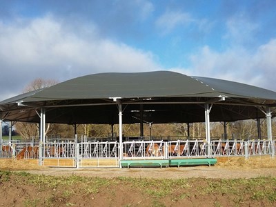 In de herfst van 2017 is in Frankrijk de allereerste Roundhouse stal van het land gebouwd. Het biologische bedrijf liet de stal bouwen voor haar vijftigtal Limousin zoogkoeien en hun kalveren. De stal is voorzien van 2 grote compartimenten voor de zoogkoeien en een kleiner compartiment voor de kalveren. De stal is rondom voorzien van feston voerhekken en een aantal zelf-sluitende voerhekken.
