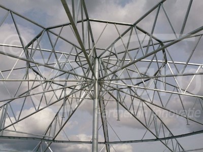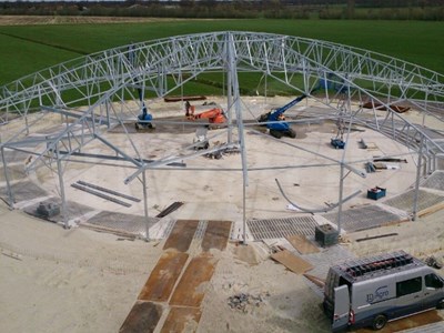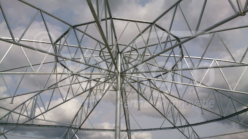 Voor deze bijzondere stal is de dakconstructie volledig opnieuw ontworpen. Hiermee is de constructie geschikt voor de 2,5 tons rondgaande stroverdeler die aan het dak van de Roundhouse hangt en vanuit daar de gehele stal kan instrooien. Daarnaast heeft het dak een hoogte gekregen van 12 meter waardoor een mooie vorm ontstaat. Dankzij deze ronde vorm en de gedekte kleurstellingen gaat de stal mooi op in het landschap. Een eigenschap die natuurlijk niet alleen geldt voor het Groningse landschap maar overal in Nederland opgaat.