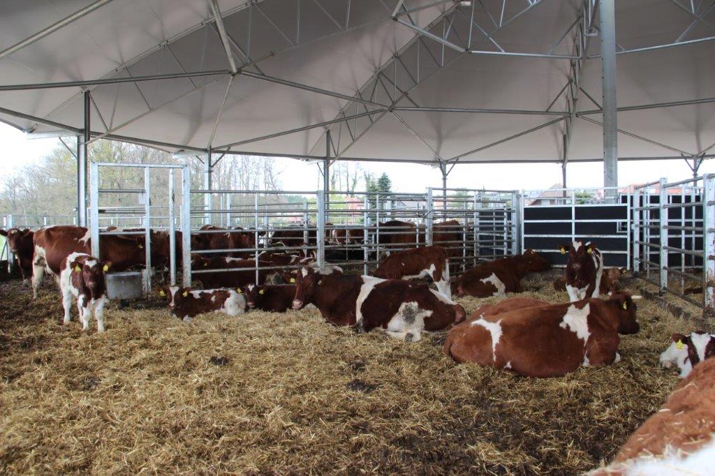 De zoogkoeienkudden van een biologische boerderij in het Duitse Nedersaksen hebben in December 2018 hun nieuwe stal betrokken. De dames staan in de zomer in de wei met hun kalfjes. Gedurende de wintermaanden verblijven ze in de Roundhouse stal. Het rundvlees wordt in de eigen boerderijwinkel verkocht.