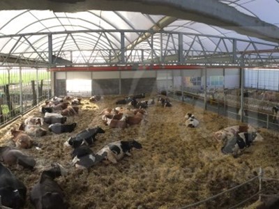 De bestaande ligboxenstal is bij dit project verbreed, de totale bovenbouw vervangen en het ligboxendeel getransformeerd naar een potstal met strobedding. Ook het jongvee is verhuisd van de ligboxen naar een apart ingestrooide ruimte. Instrooien gebeurt via een automatische instrooimachine welke geïntegreerd is met de constructie van de Serrestal.