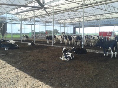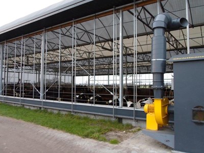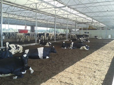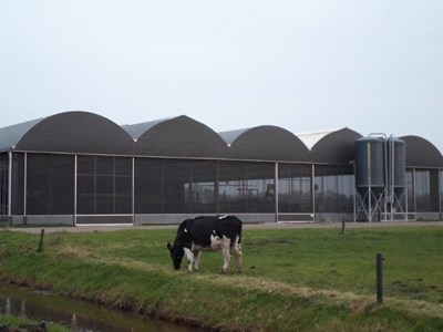 In het Overijsselse Vinkenbuurt bouwden wij een serrestal voor 100 melkkoeien en 80 stuks jongvee. De veehouder koos voor een vrijloopstal vanwege het koecomfort. De dieren lopen op een houtsnipperbodem en hebben daar ongeveer 14 vierkante meter per koe. Voor het composteren van de houtsnipperbodem is er een beluchtingssysteem geïnstalleerd met afzuiging. Een voordeel van een afzuigingssysteem is dat de vochtige lucht met bacteriën niet richting de koe worden geblazen.