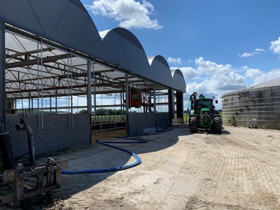 De onderbouw / fundering is als basis gebruikt en aangepast voor de realisatie van de vrijloopstal. De stal is gerealiseerd naast de bestaande ligboxenstal zodat in een volgende bouwfase deze ook overkapt kan worden. Met uitvoering van de Serrestal is rekening gehouden met het doortrekken van de bovenbouw in de toekomst. De stal is voorzien van een 2 Lely melkrobots en bied plaats aan ca. 100 melkkoeien en bijbehorend jongvee.
