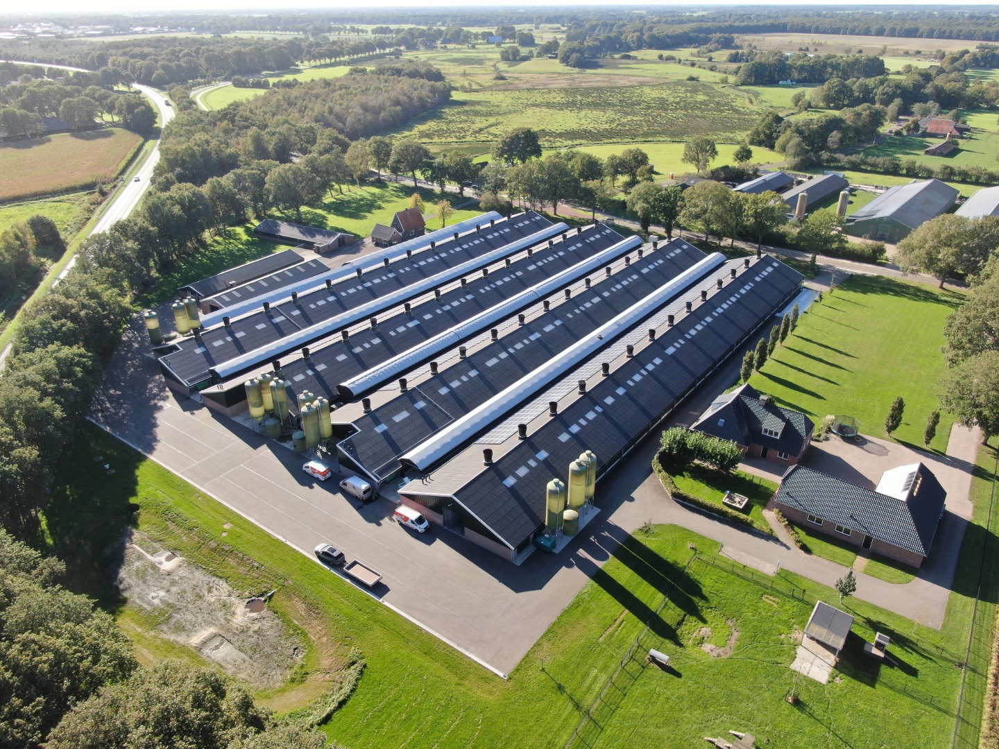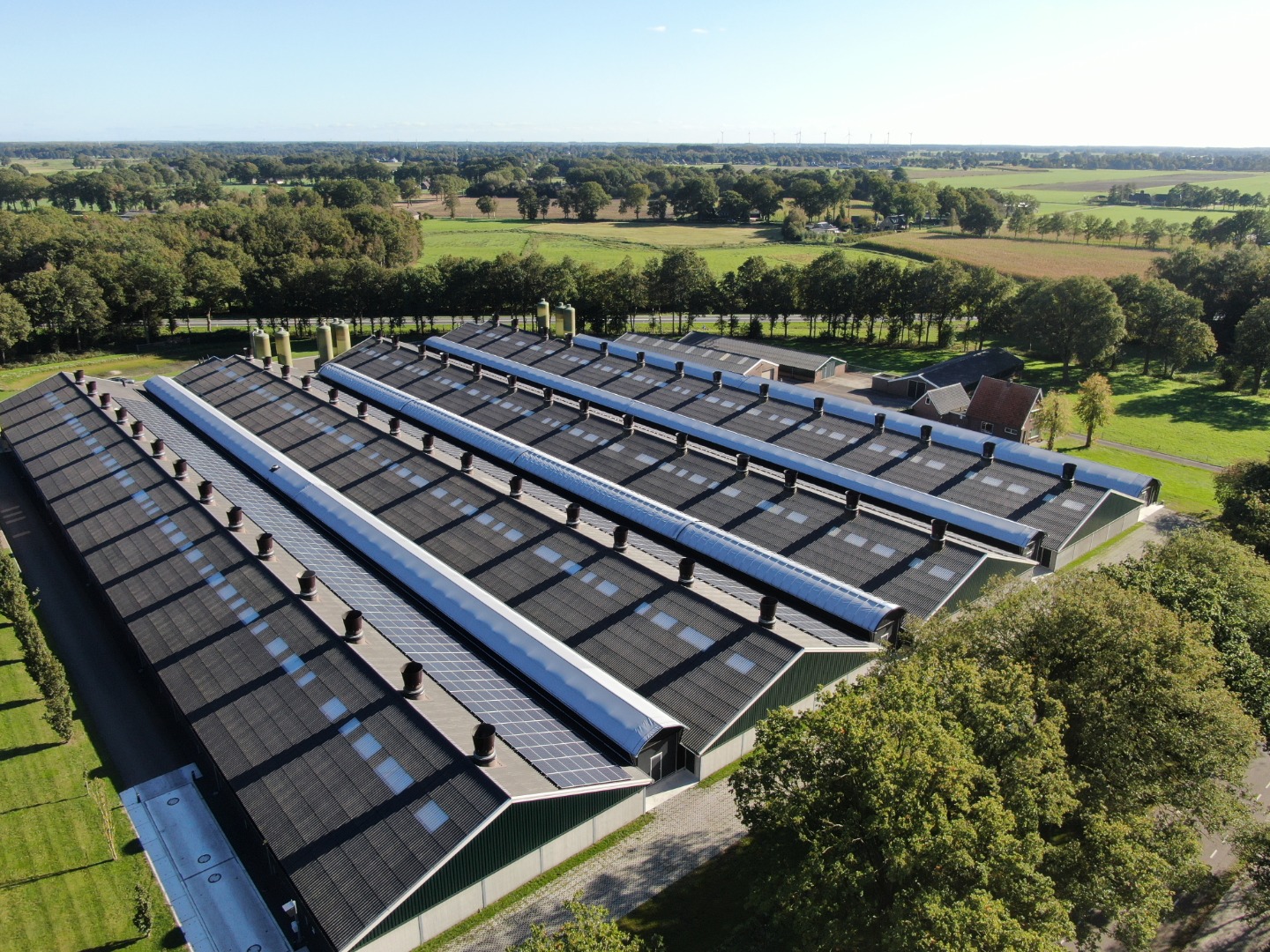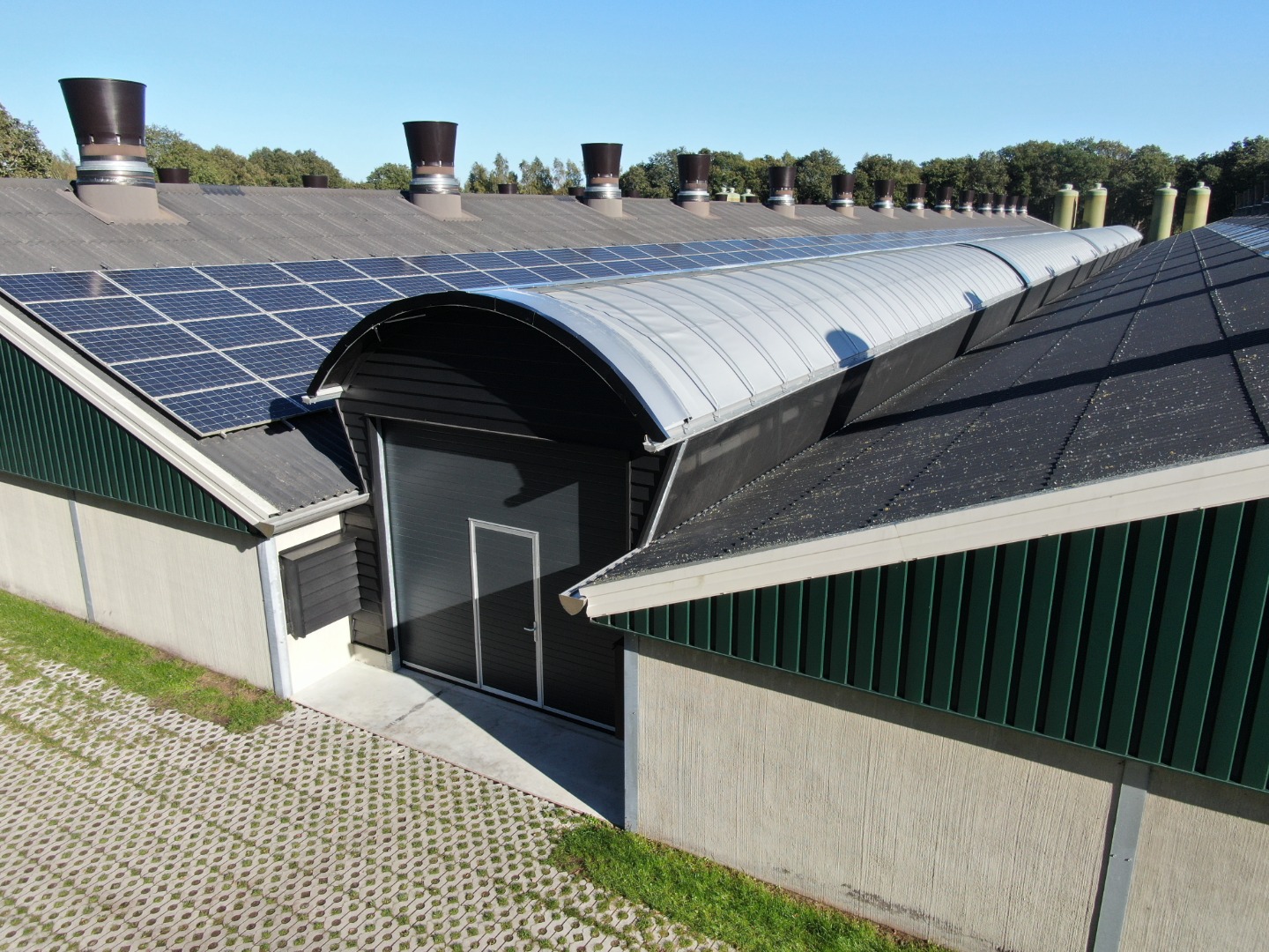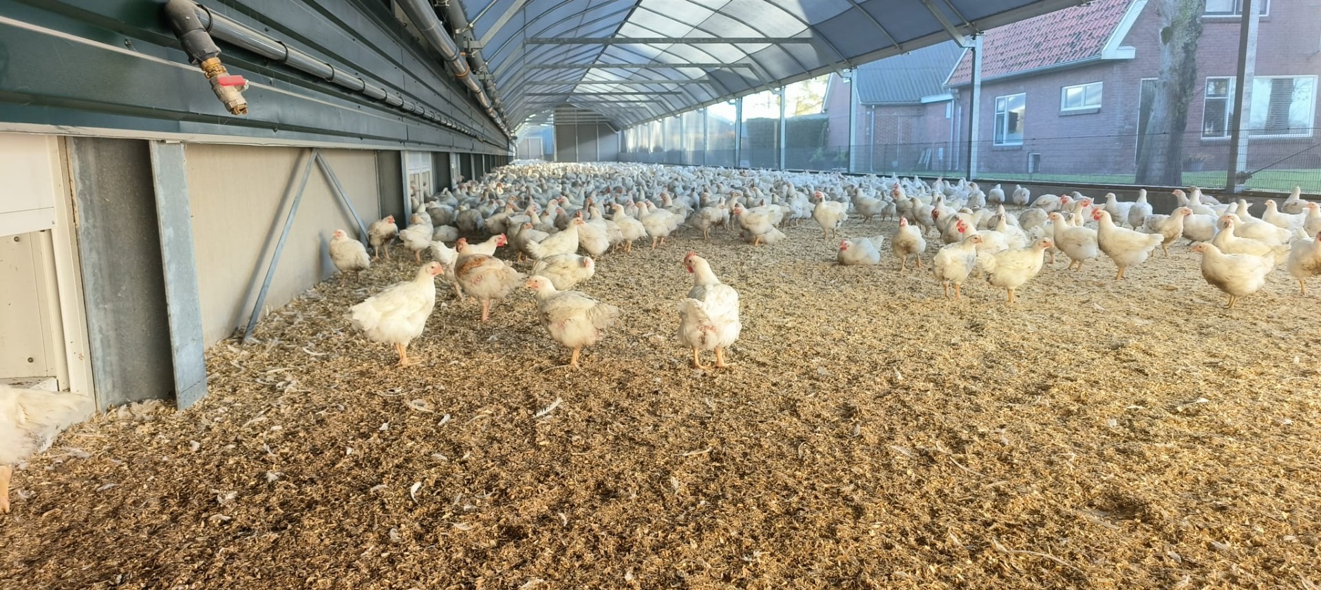 In Drenthe realiseerden we 4 overdekte uitlopen voor vleeskuikens waarbij een verhoogde uitloop voorzien is van een cabrio dak welke wegrolt bij brand. Een aantal andere uitlopen zijn voorzien van een A2 kwaliteit dak