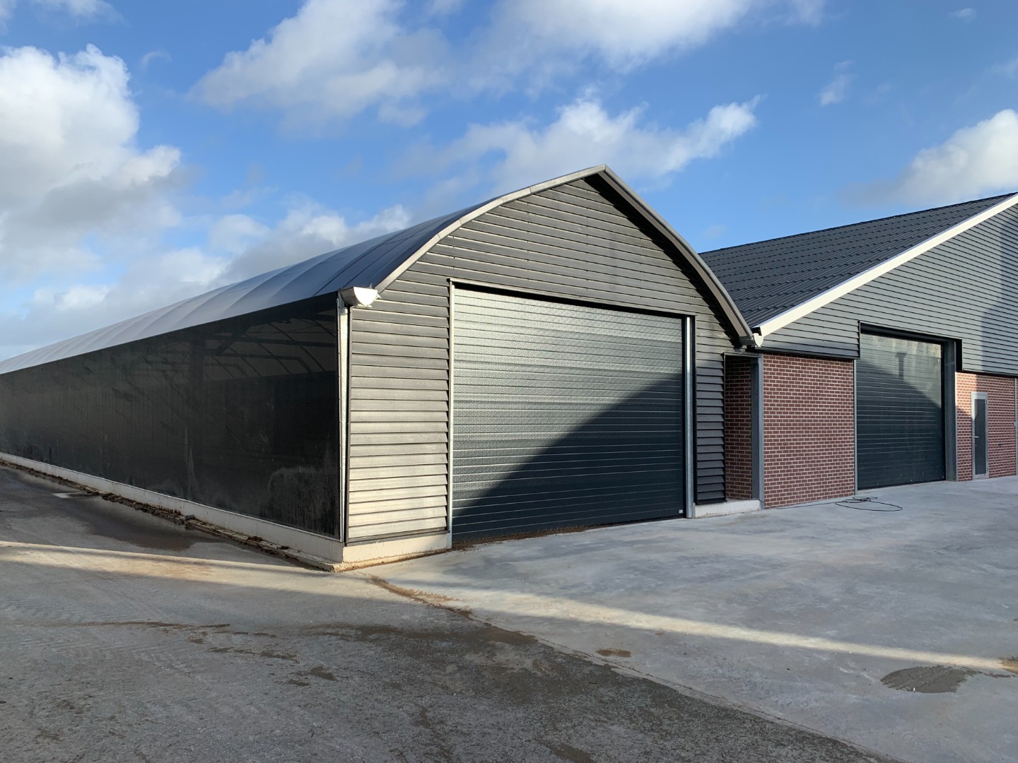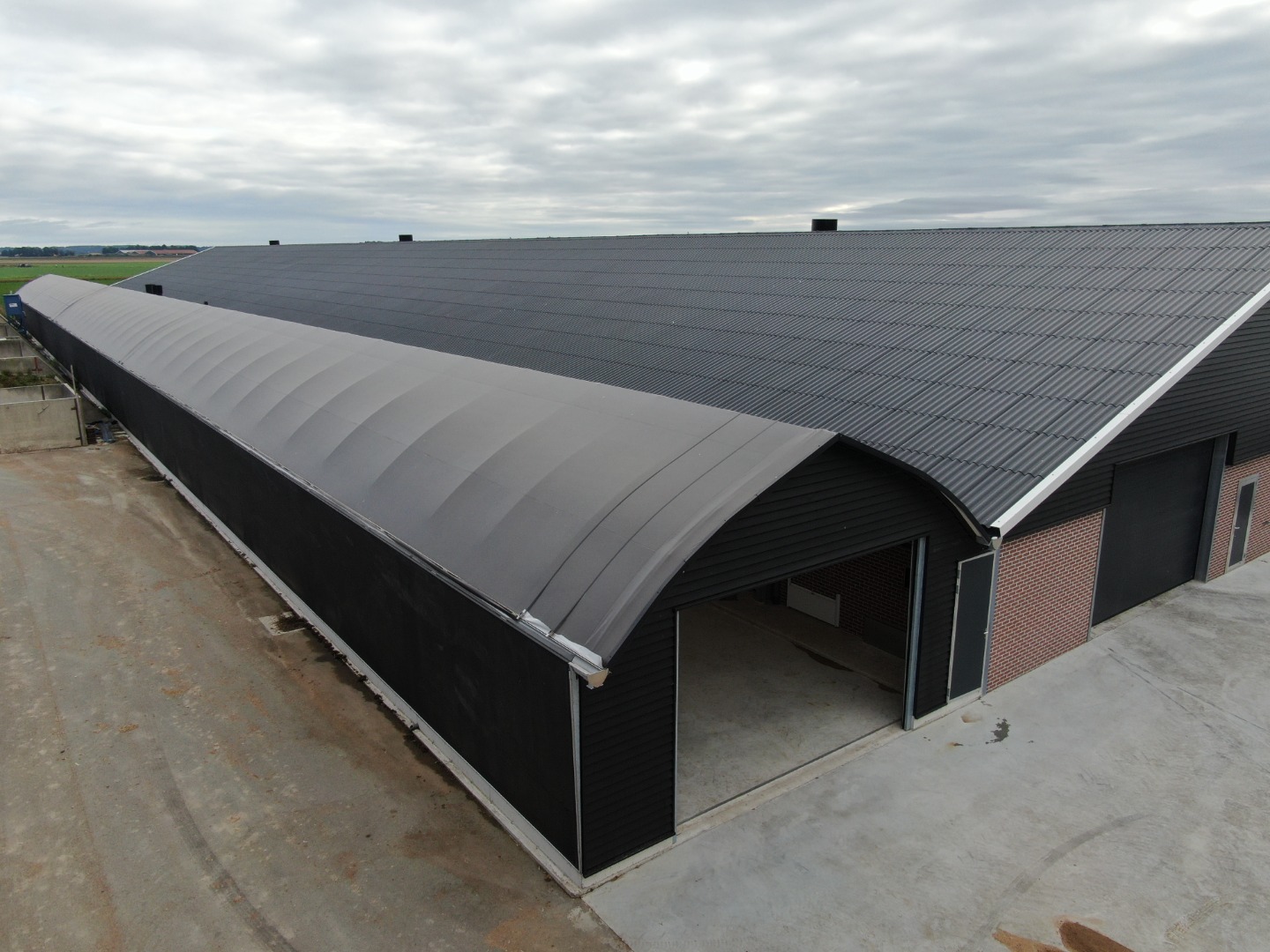 In Flevoland is deze overdekte uitloop van 115m1 lang en 8m¹ gerealiseerd voor vleeskuikens. Deze uitloop met optimale daglicht toetreding is uitgevoerd in een antraciet kleurstelling voor een mooie integratie op het erf.
