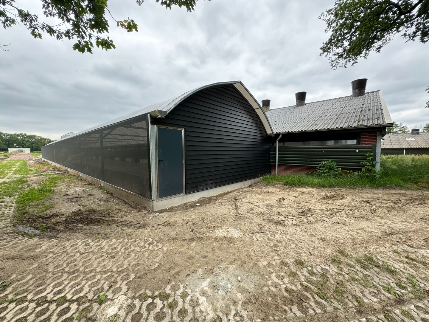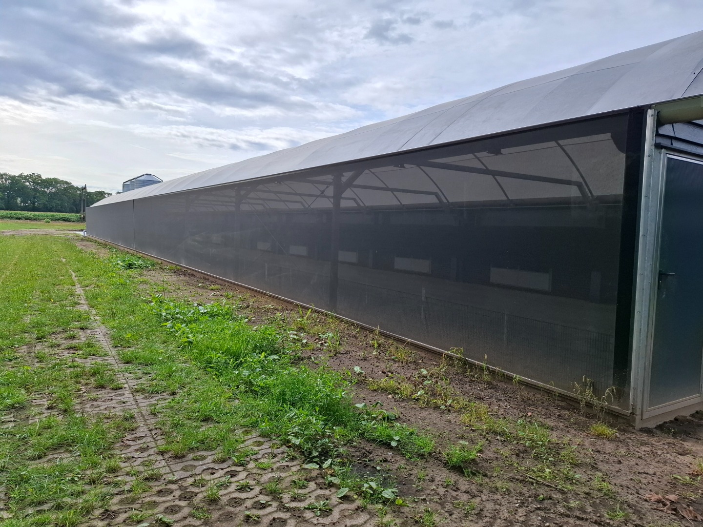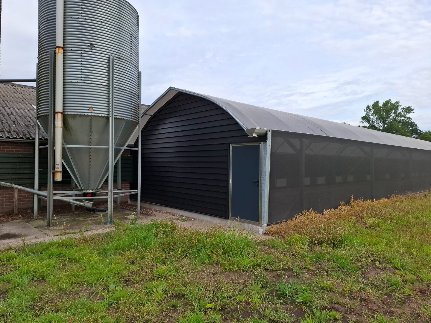 In Overijssel mochten we een 4-tal stallen voorzien van een overdekte uitloop voor vleeskuikens om zo te voldoen aan het Beter Leven keurmerk. Op de locatie is een verhoogde uitloop gerealiseerd met een cabrio dak zodat het dak wegrolt bij brand, om te kunnen voldoen aan brandveiligheid eisen.