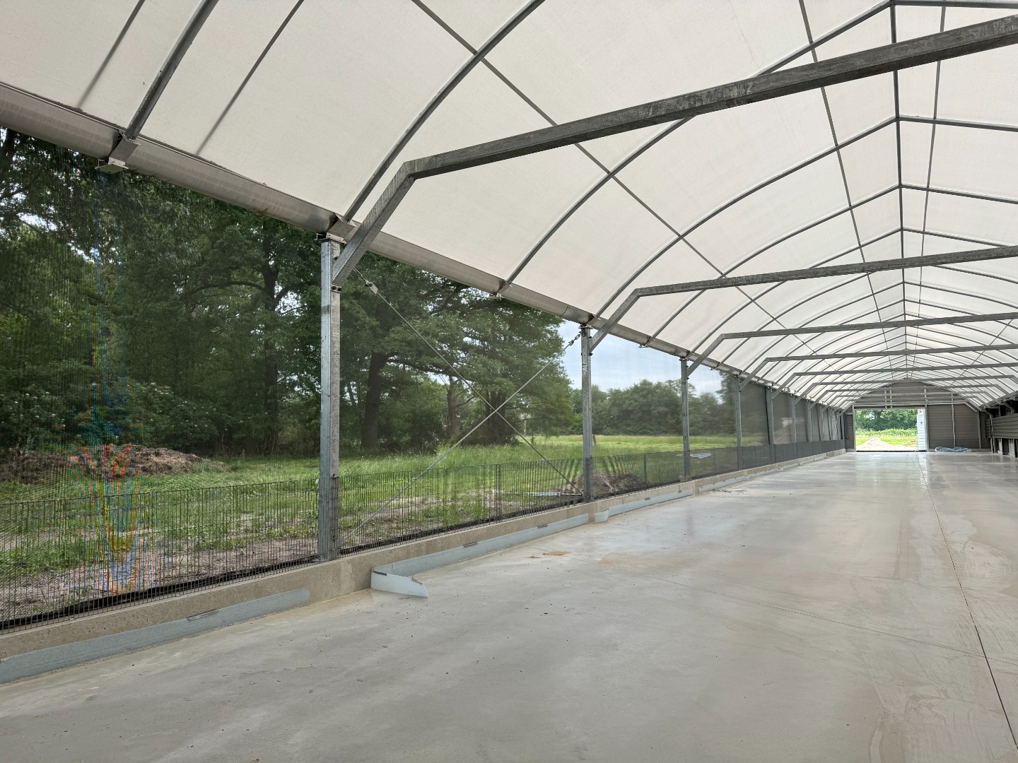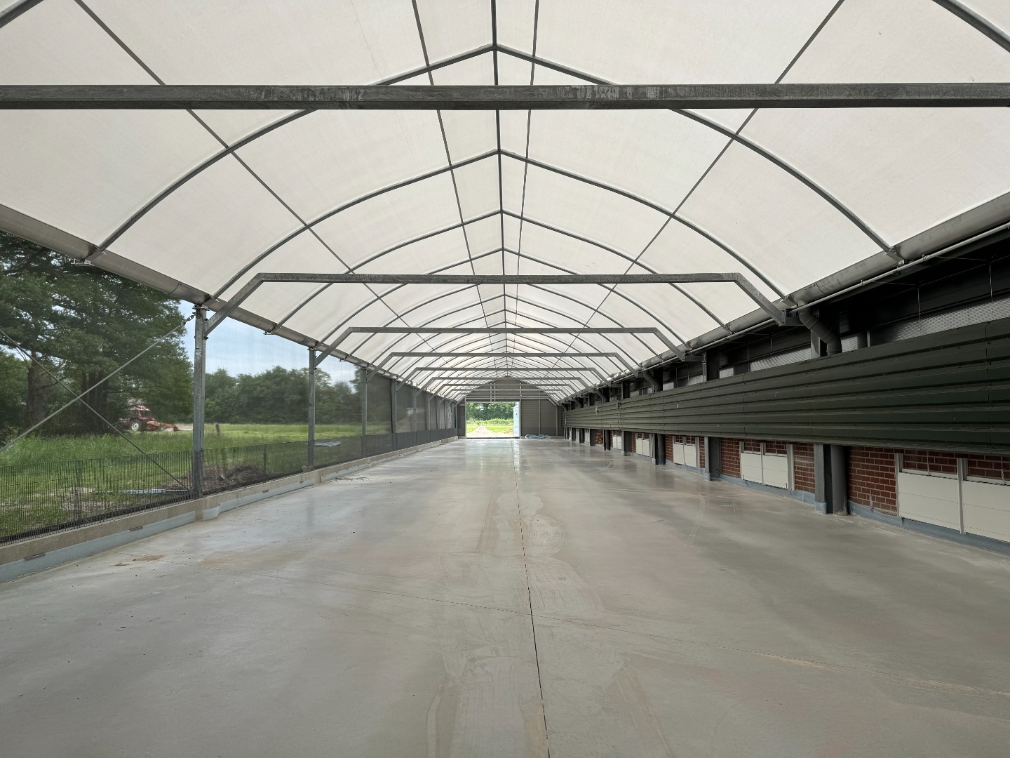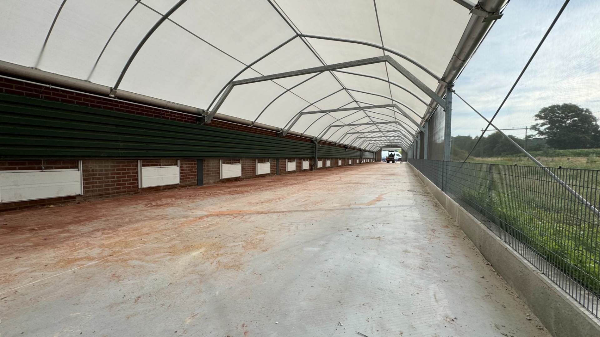In Overijssel mochten we een 4-tal stallen voorzien van een overdekte uitloop voor vleeskuikens om zo te voldoen aan het Beter Leven keurmerk. Op de locatie is een verhoogde uitloop gerealiseerd met een cabrio dak zodat het dak wegrolt bij brand, om te kunnen voldoen aan brandveiligheid eisen.