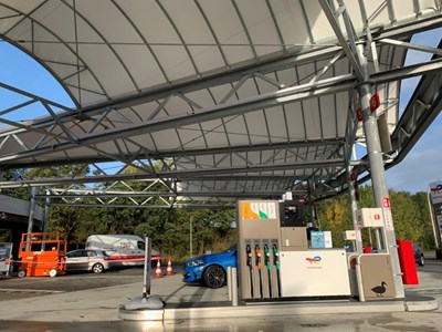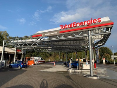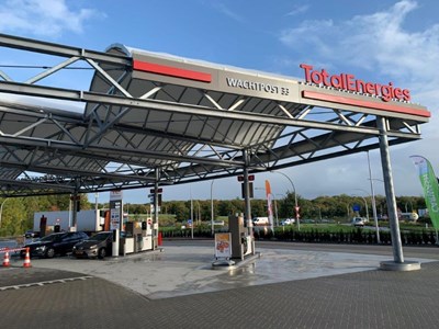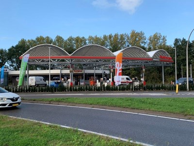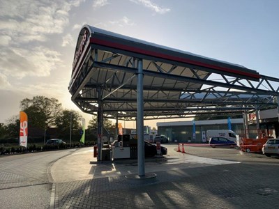 Dit jaar realiseerden wij voor het eerst een tankstation luifel voor Total Energies. De luifel kenmerkt zich door een bijzondere waaiervorm, waarbij de kappen taps toelopen.