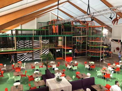 Dit gebouw wordt gebruikt als indoorspeeltuin maar het kan natuurlijk ook toegepast worden voor bijvoorbeeld een zwembad of een manege.